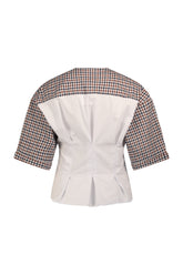 Button-up baseball-style shirt with a corset-inspired fit, made from tailored fabric.