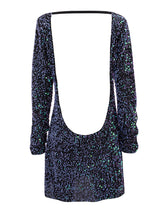 long sleeve mini dress made of sequin fabric.