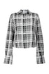 Tailored button-down shirt with shoulder pads, crafted from an elegant refined fabric.