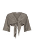 An oversized jersey shirt with a washed-dye finish, featuring a front tie detail.