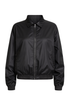 Oversized bomber-style nylon jacket featuring ribbed cuffs at the sleeves and waist, and a soft, comfortable tricot lining.
