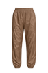 Wide-leg nylon pants with a soft, comfortable tricot lining and a ribbed cuff at the hem.
