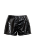 Micro lacquer shorts in a cropped cut, featuring a back zipper closure.
