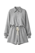 Short oversized jumpsuit with long sleeves, made from soft French terry fabric and finished with a classic polo collar. An adjustable drawstring at the waist allows a personalized fit, while raw-cut edges create a relaxed, effortless look