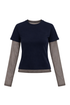The inner layer is crafted from sheer tissue fabric with long sleeves, while the outer layer is made from jersey fabric with short sleeves.