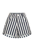 Denim shorts made of bold, thick striped fabric. Back side slightly longer than the front.