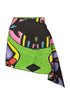 Skirt crafted from thick satin fabric with a unique print, featuring a button closure and a fluid draped hem for an elegant finish.