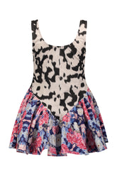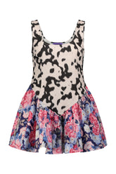 Mini dress made from tailored fabric with a mixed print and a side zipper.