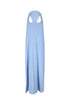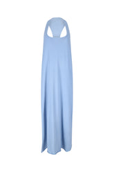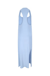 Oversized tank-style dress with a masculine cut, made of fabric with an aggressive wash for a laid-back look. Large open back, rolled hem, side slit. Length varies between the two sizes.