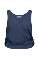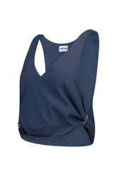 Tank top made of thick, soft jersey fabric with raw-cut edges. Removable side loops create a rounded, waist-revealing look.