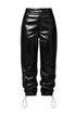 High-waisted oversized cargo-style pants, featuring adjustable drawstrings at the hem for a versatile look - can be worn open and wide, or tightened for a more defined shape.