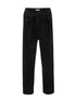 Fashionable pants styled like a tied sweatshirt at the waist.