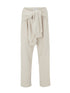 Fashionable pants styled like a tied sweatshirt at the waist.