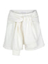 Fashionable sweatshorts styled like a tied sweatshirt at the waist.