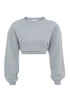 An oversized-style crop with long sleeves and padded shoulders, made from french terry fabric.