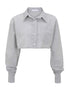 An oversized-style cropped shirt with long sleeves, made from tailors fabric.