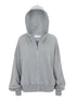 A comfy lightweight French terry sweatshirt with an oversized fit. Features a zip closure and glove-style cuffs.