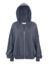 A comfy lightweight French terry sweatshirt with an oversized fit. Features a zip closure and glove-style cuffs.
