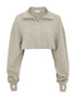 A cropped shirt made from lightweight French Terry fabric, featuring an elastic hem, a front zipper, and cuffs on the sides of the sleeves.