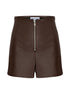 Chic high-waisted vegan leather shorts with a sleek straight-cut design. Features a front zipper.