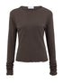 A lightweight and semi-sheer jersey top with a small boat neck design. The MIDI length is ideal for tucking into pants smoothly, without extra fabric. One-size fits sizes 34-40 comfortably.