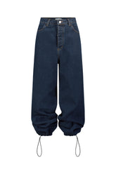 High-rise oversized fit with a cargo-inspired style and adjustable drawstring at the hem.