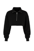 Long-sleeve top featuring a short zipper, high collar, and wide sleeves.
