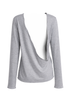 Long-sleeve jersey top with raw-cut edges and an asymmetrical back opening.