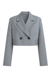 Features raw-edge finishing, faux pockets, and structured shoulder pads for an elegant, refined look.