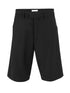 Tailored Bermuda shorts with a slim side-fit design, featuring side pockets and a sleek closure with a hook and inner button.