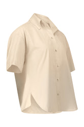 The FRANCIS button-down with short sleeves, made from a tailored fabric. Slightly structured oversized fit. Available in 2 sizes – choose your size based on your height.