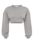 An oversized-style crop with long sleeves and padded shoulders, made from french terry fabric.