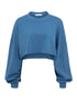 An oversized-style cropped shirt with long sleeves, made from washed jersey fabric.