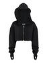 A comfy French terry cropped hoodie with glove-style cuffs. One-size fits all. Perfect for everyday wear